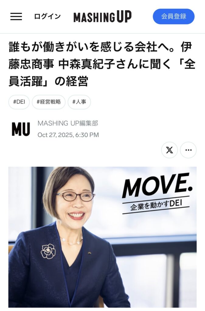 株式会社メディアジーンが運営する「Business Insider Japan」のMASHING UPで、伊藤忠商事の社外取締役、中森真紀子様のインタビュー記事の執筆を担当しました。